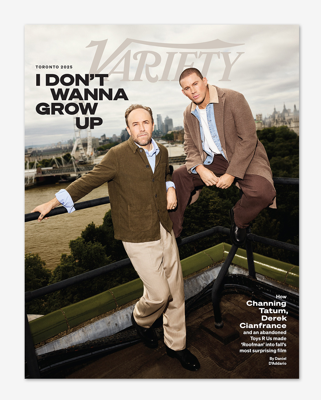 After a year marked by physical setbacks and creative breakthroughs, Channing Tatum is ready for what comes next. He reveals he injured his leg while filming "Avengers: Doomsday," forcing him to sit out major action sequences opposite Robert Downey Jr.’s Doctor Doom. “I just hate getting old,” he admits.But the heart of his year is "Roofman," his new film with Derek Cianfrance ("Blue Valentine"), about real-life criminal Jeffrey Manchester, who famously hid out in a Toys R Us after breaking out of prison. Cianfrance calls it a chance for both of them to “just play again” — Tatum by tapping into his inner child, and Cianfrance by returning to filmmaking after a creative break.In their Variety cover story, Tatum talks Marvel, his four-year break, and why he’s planning a “10-year run” of roles that challenge him as much as they entertain. Cianfrance says it’s the kind of collaboration that reminds him why he fell in love with filmmaking in the first place. “I can flex some of the sh*t I’ve learned in the last 20 years,” Tatum adds.Read it now at the link in bio.(📸 @zoemcconnell)-- Location: @thesavoylondonStyling: @martin__metcalfGrooming: @taliasparrowmakeupProduction: @joonrepresentsFashion Credits:COVER and Opening Spread (rooftop photos):Channing:Coat: Brioni; Jacket: Brunello Cuccinelli; T shirt: Margaret Howell; Jeans: Levi’s; Boots: Jimmy ChooDerek:Jacket: ISTO; Shirt: Margaret Howell: Trousers and shoes: Brionibrioni@brunellocuccinelli_brand@margarethowellltd@levis@jimmychoo@isto.pt