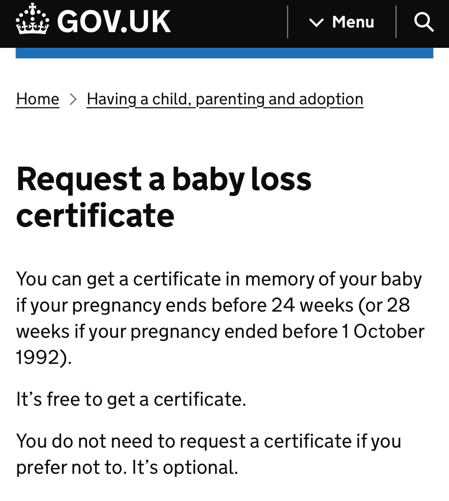 For anyone in England who has experienced the heartbreak of losing a baby before 24 weeks, the government has introduced a new baby loss certificate. This gesture may not resonate with everyone, but having gone through the loss of multiple pregnancies myself, I wanted to share it. I know this recognition would have brought me comfort, and it marks a meaningful step forward for women’s health. I may still seek this for myself and encourage you to share it with anyone in your life who might find it healing or helpful. Pregnancy loss is a deeply painful thing to experience and often leaves people with a lot of trauma, so anything that can be done to help acknowledge the magnitude of this experience feels extremely positive.Link in stories ????