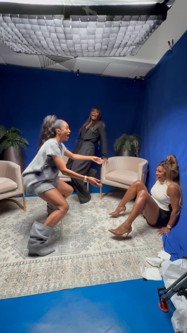 OMG… @venuswilliams said her legs not working and @serenawilliams ended up on the floor!! I live for moments like this with my girls! So much fun on @stocktonstpodcast 😂💃🏽