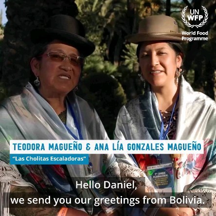 Remember the @cholitasescaladorasoficial ? It’s International Day of the World's Indigenous People and I have the honour once again to shine a light on the incredible work of my fellow advocates in the @worldfoodprogramme family. Ana Lía Gonzales Magueño and Teodora Magueño are two exceptional climbers from Bolivia ???????? and true heroes when it comes to advancing the rights of Indigenous people and fighting global hunger. Ana Lia and Dorita you have overcome so many challenges, not only on the mountains, but also in society. You inspire people around the world, and I am proud to share your message with the world today ???? In Bolivia 4 million people are suffering from acute hunger and indigenous people are especially affected. The climate crisis is making it difficult for many indigenous communities to grow food. But it is indigenous knowledge that has the power to end hunger. Indigenous communities account for just over 6% of the world's population but protect 80% of the world's biodiversity. WFP works with Indigenous communities in Latin America, Africa and Asia and to enhance resilience in the face of inequalities, discrimination, and a changing climate.---------¿Recuerdas a las Cholitas Escaladoras? Hoy es el Día Internacional de los Pueblos Indígenas y tengo el honor una vez más de destacar el increíble trabajo de mis colegas defensoras en la familia del @worldfoodprogramme. @Liitacholitaclimber Ana Lía Gonzales Magueño y Teodora Magueño son dos escaladoras excepcionales de Bolivia ???????? y verdaderas heroínas en la defensa de los derechos de los pueblos indígenas y en la lucha contra el hambre mundial. Ana Lía y Dorita, han superado muchos desafíos, no solo en las montañas, sino también en la sociedad. Inspiran a personas de todo el mundo, y estoy orgulloso de compartir su mensaje hoy ????En Bolivia, 4 millones de personas están sufriendo de hambre aguda y los pueblos indígenas son especialmente afectados. La crisis climática está dificultando que muchas comunidades indígenas cultiven alimentos. Pero es el conocimiento indígena el que tiene el poder de acabar con el ha