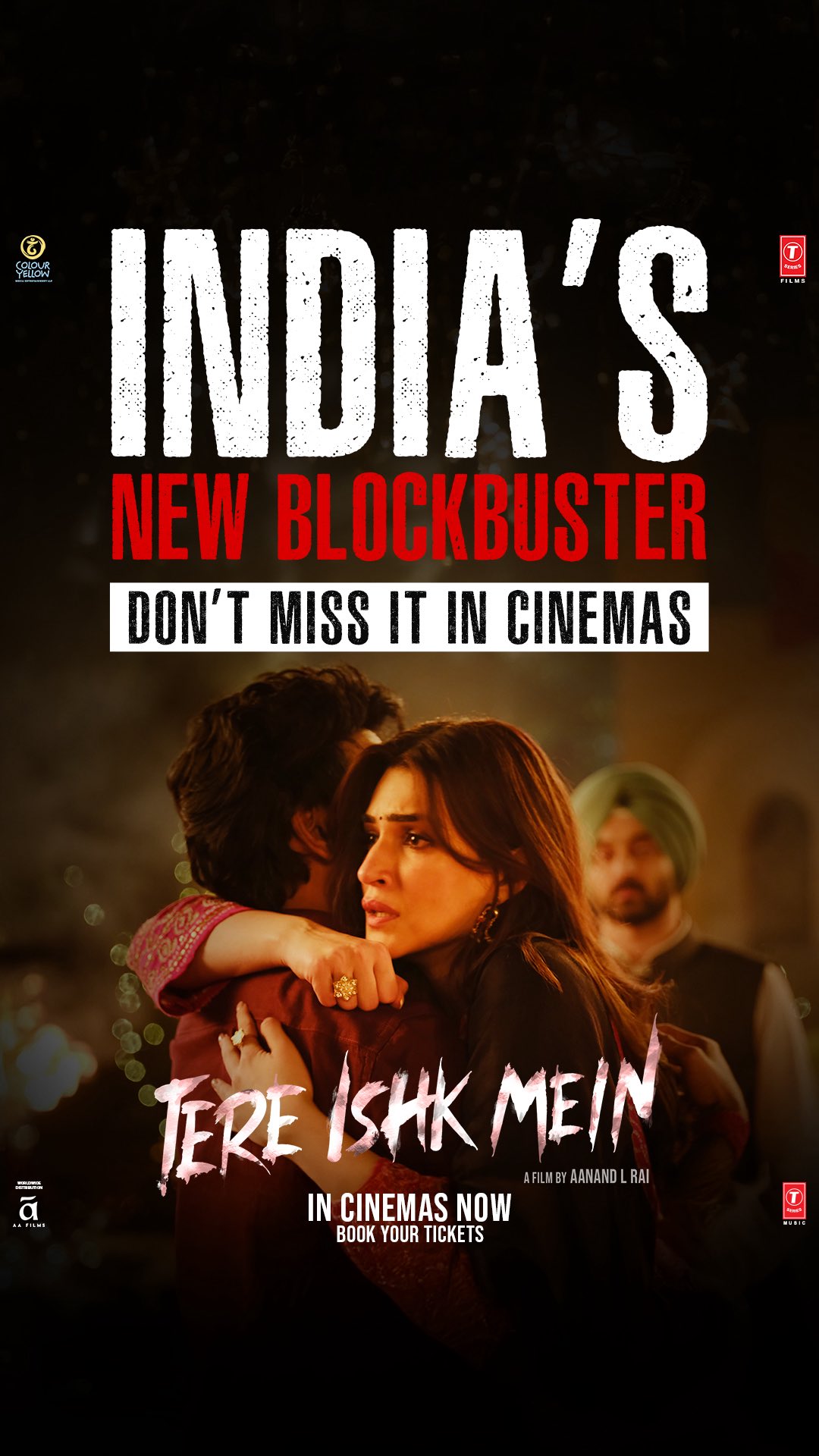 We’ve lived with this story and its characters for years… now it’s your turn.❤️🔥#TereIshkMein advance booking open now.In cinemas worldwide on 28th November 2025, in Hindi, Tamil & Telugu.@dhanushkraja @kritisanon @arrahman @aanandlrai #BhushanKumar #HimanshuSharma #KrishanKumar @irshadkamilofficial @neeraj.yadav911 @shivchanana @neerajkalyan24 @tseriesfilms @tseries.official @colouryellowmovies @aafilms.official