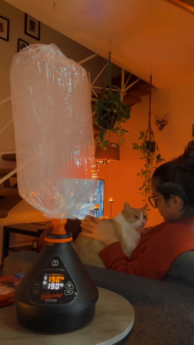 Dry calming herbs, The Volcano Hybrid from @storz.bickel , cats, a book and candles.It can be freezing outside for all we care.❤️????????????????????#ad