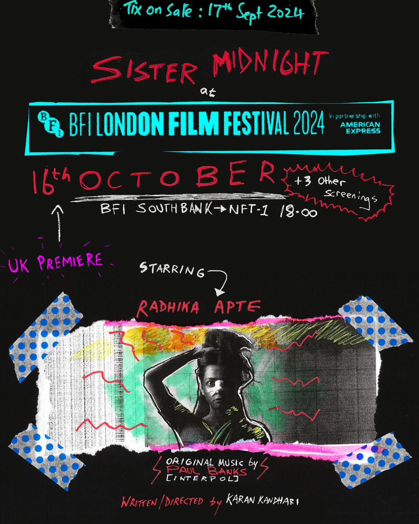 ???????? Sister Midnight at BFI London Film Festival ????????????️ Ticket Link in bio ????️????On sale for BFI Members: 10th September ‘24 ????????On sale for General Public: 17th September ‘24 ????Screenings:⚫️ Wednesday 16 October 2024 18:00BFI Southbank, NFT1⚫️ Thursday 17 October 2024 20:45Vue West End, Screen 5???? Thursday 17 October 2025 16:45 ICA, Screening 1 ⚫️ Sunday 20 October 2024 20:30Curzon Soho Cinema, Screen 2⚫️ Sunday 20 October 2024 20:45Curzon Soho Cinema, Screen 3