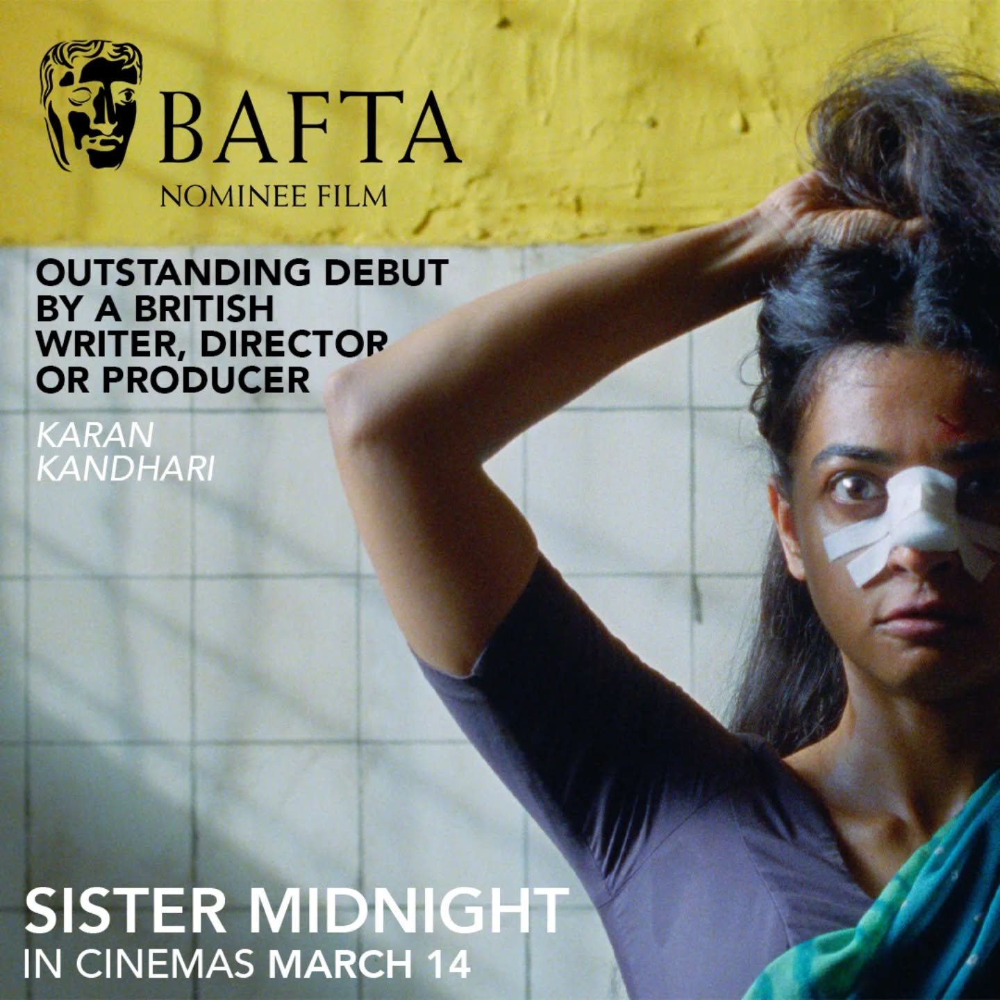 Calling Sister Midnight... ????????Huge congrats to writer-director Karan Kandhari (@deathpunkbaby) on being @bafta-nominated for Outstanding Debut by a British Writer, Director or Producer! ????SISTER MIDNIGHT is in UK and Irish cinemas March 14 ????????️#sistermidnight #bafta #eebaftas