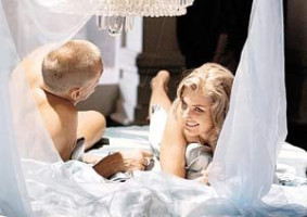 Лундгрен возлежал на огромной кровати в одних трусах, а Кудиковой и вовсе пришлось обнажиться. Правда, по заверениям Грымова в самом видео не будет и намека на голые перси певицы.