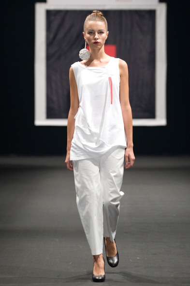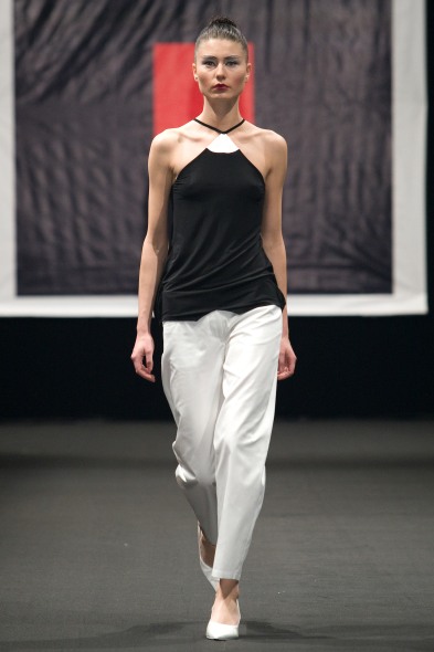 Коллекция состоит из трёх блоков – одежда для дня, вечера и ночи. Основных цветов тоже три – белый, красный и чёрный. Материалы – шёлк, вискоза, хлопок и трикотаж.