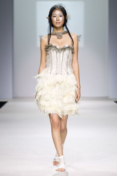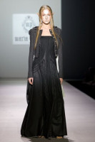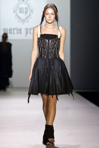 Чёрно-белая эльфийская коллекция Марии Прайор явно противоречит нашим представлениям о знойной Аргентине. Дефиле напоминало торжественную церемонию чёрных и светлых эльфов – оба эти цвета являются доминирующими в представленных моделях. Фраки, узкие брюки, многослойные платья выше колена – вот, пожалуй, и всё. Подобный минимализм дополняется мрачноватой музыкой, и гости уже не на модном дефиле, а на бале чёрного и белого, зла и добра.