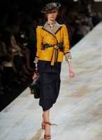 Испробовав стили трэш и панк, Марк Джейкобс снова удивил публику. На Неделе моды в Нью-Йорке британский модельер представил изысканный и в то же время забавный стиль Мэри Поппинс. Соломенные блестящие шляпки, очки а-ля 50-е, сандалии с огромными рубинами, пояса с драпировкой. Экстравагантные наряды Джейкобса покорили сердца зрителей обилием неповторимых и уникальных деталей. И если основная масса дизайнеров идет на поводу у длины мини, то британский модельер Марк Джейкобс решил ограничиться узкими юбками, доходящими до колена или до середины икры. В новой коллекции, которую сам создатель резюмировал как «Америка, Бродвей, наивность, женственность», Джейкобс уникальным образом сочетает профессионализм, творчество и юмор.