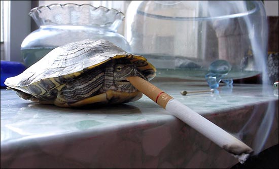 Ли Юн из города Кукянь в китайской провинции Шаньси утверждает, что у него дома живет курящая черепаха. По словам Юна, животное пристрастилось к табаку из-за непотушенных бычков, которые он бросал у себя в саду.