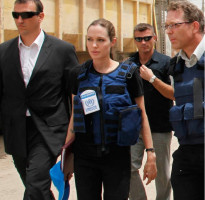 34-летняя звезда в качестве посла доброй воли ООН посетила лагерь иракских беженцев в пригороде Багдада. Очаровательная актриса встретилась с семьями беженцев, которых на сегодняшний день насчитывается более полутора миллионов.
