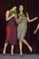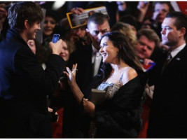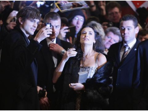 Вечером на красной дорожке Деми тожене выглядела как гламурная персона - красивый, но простой наряд и прическа, ничего пафосного. Поддержать жену прибыл Эштон Катчер, который активно фотографировал происходящее на мобильный телефон. Простые, в общем, смертные люди:)