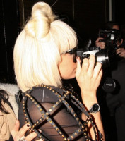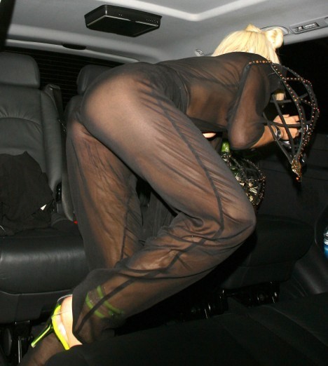 Певица пришла в лондонский клуб «Бунгало 8» в прозрачном шифоновом костюме, через который просвещались все ее прелести. Самые интимные места ГаГи прикрывали черные наклейки, однако это не помешало папарацци сделать несколько пикантных снимков.
