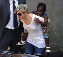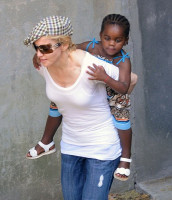Звезда была замечена в Лондоне с четырехлетней африканской девочкой, которая на прошлой неделе прилетела из Малави к своей новой маме.