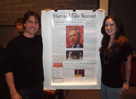Круз с интересом слушал лекцию юриста и иногда перешучивался с соседями по парте. После того, как Бертрам закончил выступать, он попросил мистера Круза выйти к доске и поделиться опытом с молодежью. Том не отказал и поведал юным гарвардцам о таблоидах и публикациях относительно недвижимости знаменитостей, о работе с режиссером Стенли Кубриком и о сравнительном кинобизнесе США и Европы. Далее пошли примеры и вопросы - то есть все как полагается в университете. Том постоянно шутил и смешил студентов, внимательно их слушал и отвечал на вопросы.