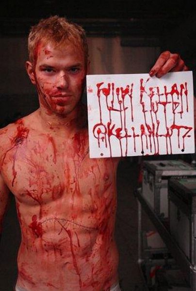 Он якобы кровью написал "Follow Kellan Lutz @kellanlutz.". На своем блоге под этим фото он пишет: "Пытаюсь добиться подтверждения. Хахха".