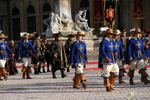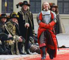 Будущий папа Орландо Блум был замечен на съемочной площадке фильма «Три мушкетера» режиссера Пола Андерсона в Германии. В костюме герцога Букингемского актер выглядел очень гармонично.