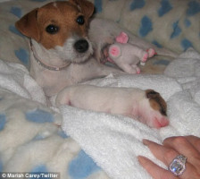 Мэрайя Кэри выложила на своем Твиттере фото новорожденного щенка, которого подарила ей собачка Чача. Девочку-щенка пока никак не назвали, но уже тысячи поклонником Мэрайи поздравляю ее с пополнением в семействе.