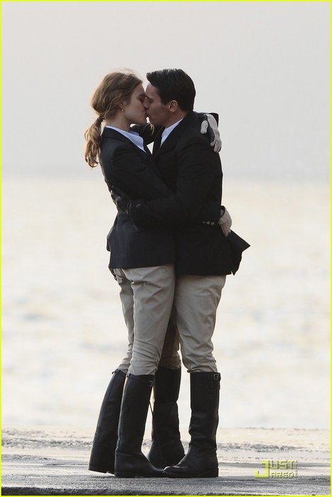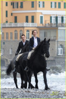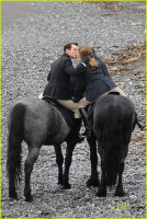В четверг они были замечены на съемках фильма в Италии. Они сначала скакали на лошадях по пляжу, а потом целовались.