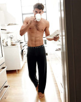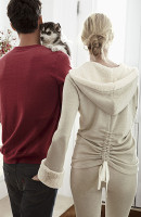 Молодые люди позируют в уютных интерьерах просторной, светлой квартиры. До торжества - еще пара дней, но подготовка идет уже вовсю - в углу стоит елка (ее еще не успели распаковать!), на столе - шампанское (почему бы не открыть бутылочку прямо сейчас?), а сами герои - влюбленная парочка - наслаждается погожим утром в комфортном белье, пижамах, халатах.