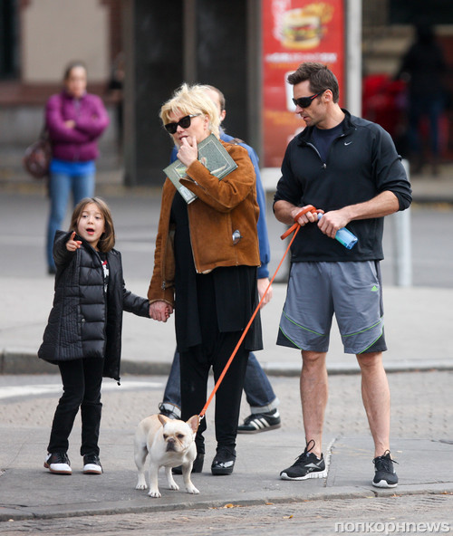 Хью Джекман с семьей в Нью-Йорке