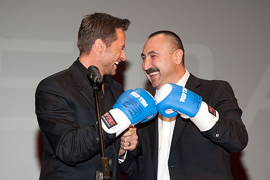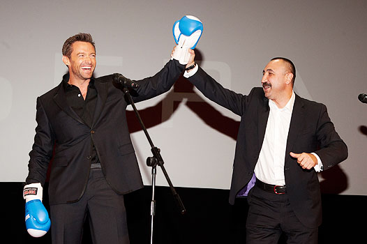 Выступая на сцене перед началом показа, Джекман, как водится, сказал несколько слов по-русски. Затем на сцену поднялся чемпион Олимпийских игр и президент Федерации бокса РФ А.Б.Лебзяк и вручил Джекману боксерские перчатки со словами, что боксом все же должны заниматься люди, а не роботы.