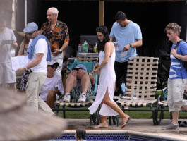 Судя по фотографиям со съемочной площадки, работа у нее совсем не скучная и не однообразная. Актриса успела вдоволь повеселиться, снимаясь в очередном эпизоде.
