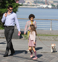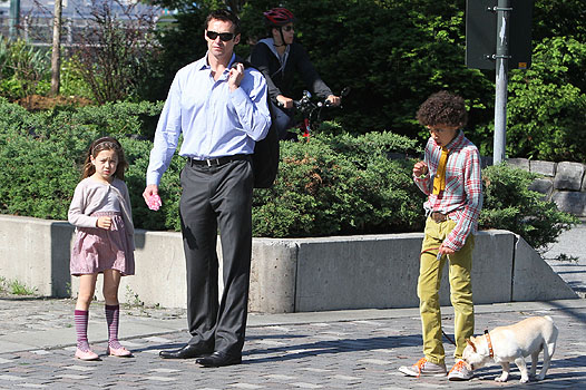 Складывалось впечатление, что Хью встретил детей сразу после какой-нибудь деловой встречи - на нем был костюм, однако уже не было галстука. В принципе, если б не было рубашки - нам тоже понравилось бы.