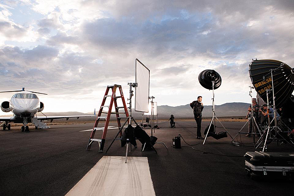 Брутальный Бэкс снят на взлетно-посадочной полосе аэро- и космодрома Мохаве, на фоне собственного реактивного самолета. Автором фотосессии стал американский фотограф Энтони Мандлер.