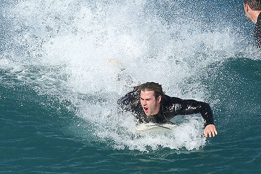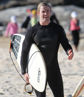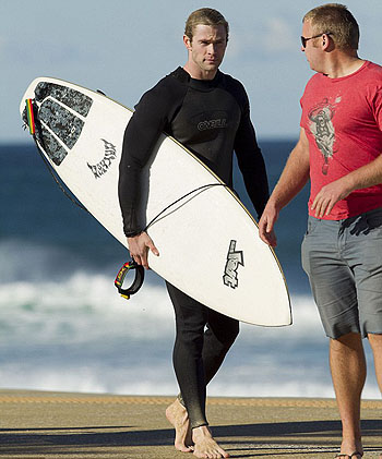 Молодой отец и успешный актер Крис Хемсворт нашел немного времени для отдыха. На побережье родной Австралии Крис решил заняться серфингом.