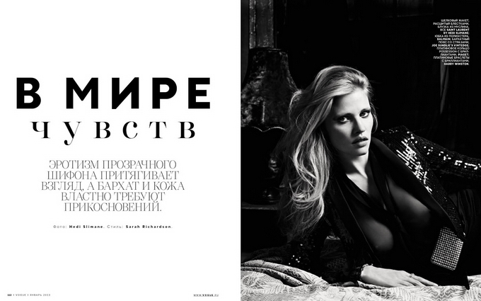 Лара Стоун украсила своими фотографиями январский выпуск российской версии журнала Vogue. Фотограф Эди Слиман стал автором строгой черно-белой фотосессии под названием "В мире чувств".