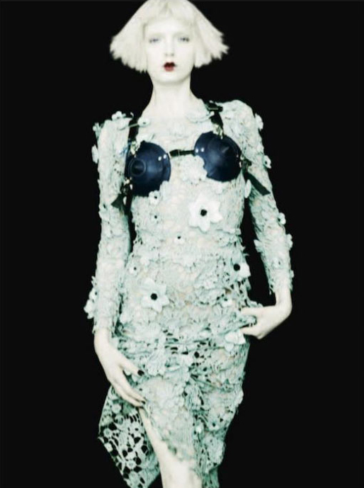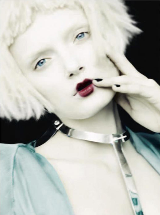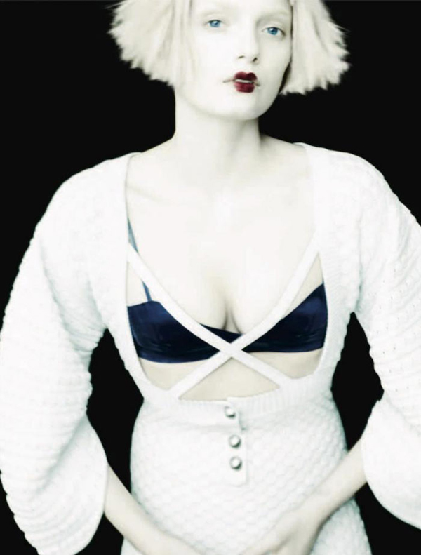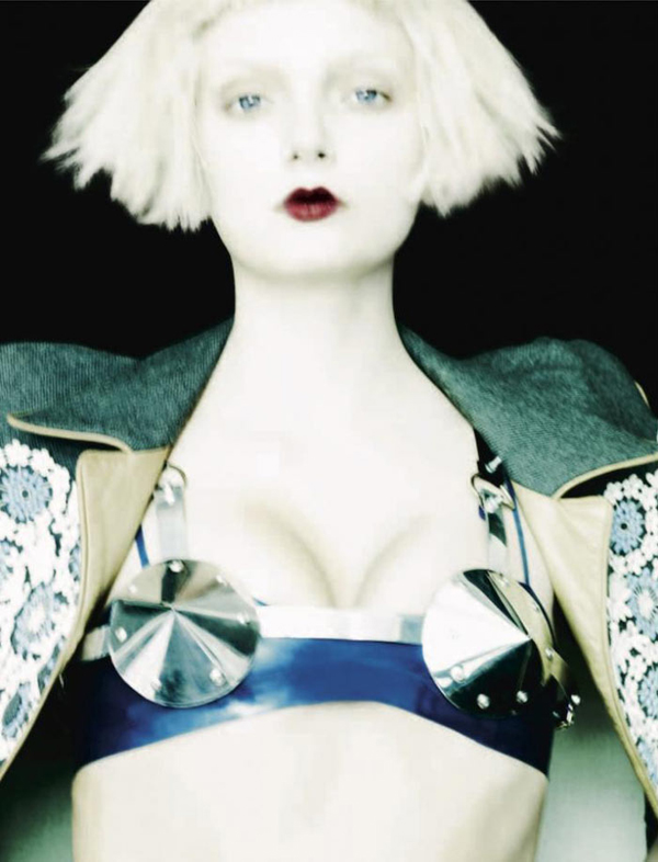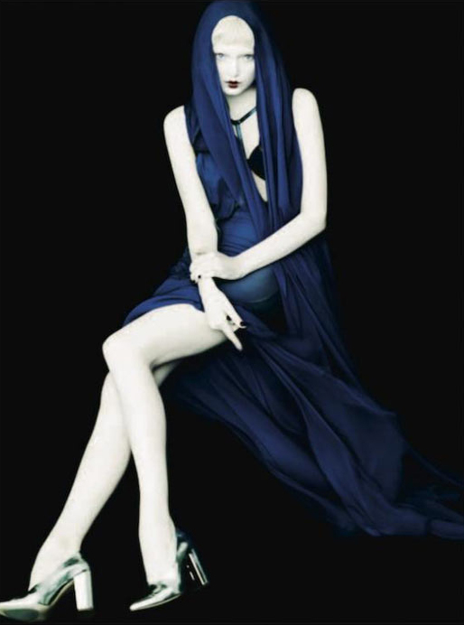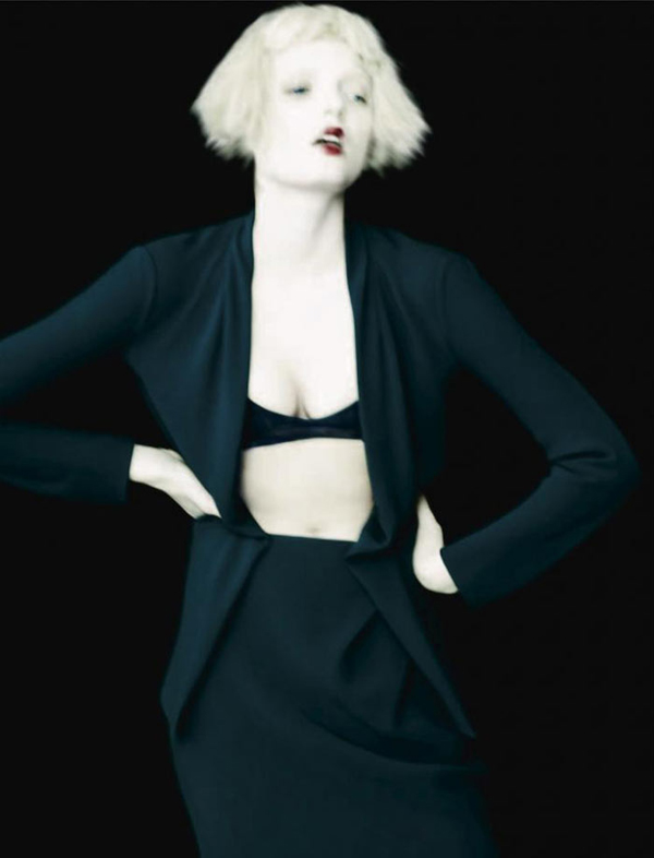 Бледная красавица примерила наряды от Jean Paul Gaultier, Salvatore Ferragamo, Christopher Kane и Haider Ackermann.