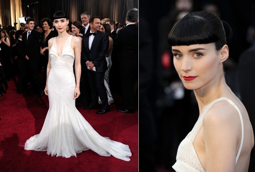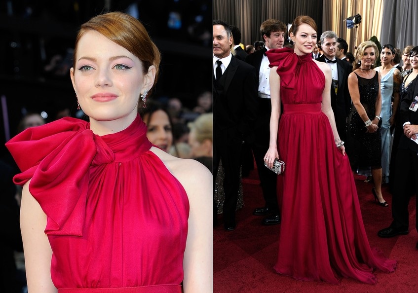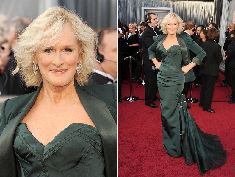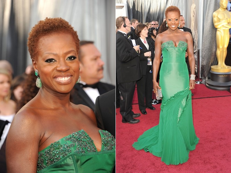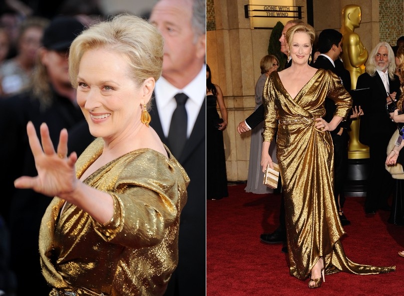Итак, номинантки на лучшую женскую роль были одеты: Мерил Стрип - золотое Lanvin, Виола Дэвис - зелёное Vera Wang, Мишель Уильямс - красное Louis Vuitton, Руни Мара - белое Givenchy, Гленн Клоуз - изумрудное Zac Posen.