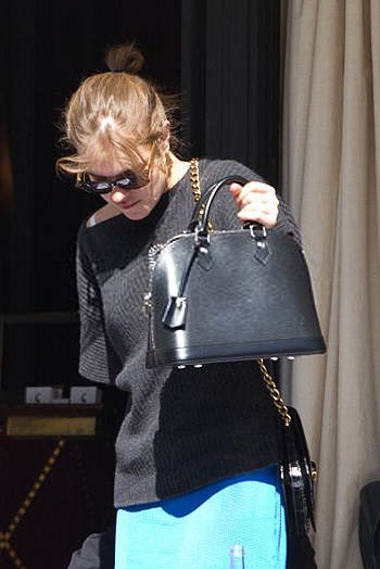 Наташа была одета в расслабленном casual-стили: свободный темно-серый свитер и яркая юбка. Сумка Louis Vuitton и красные туфельки-"шпильки" добавили образу шика.