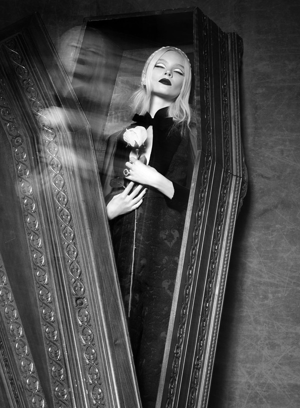 Модель Анна Герасимова, также известная как Aspen, стала героиней журнала Elele, который решил уже основательно подготовится к Хэлоуину. Только этим можно объяснить идею фотографа Корая Парлака, который создал такие мрачные образы.