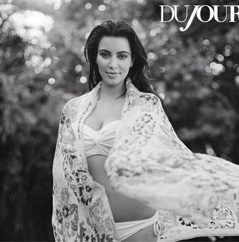 «Да, Ким снималась, будучи беременной, — говорит редактор Du Jour Кит Поллок. — Уверяю, это ее первая сессия после того, как она объявила о своем интересном положении».