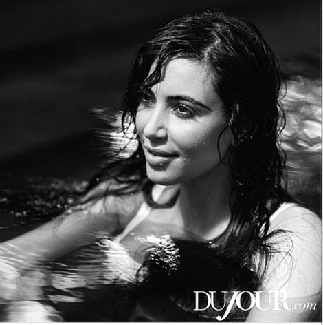 Американская теледива Ким Кардашян появилась на страницах журнала Du Jour. Фотосессия получилась в момент, когда Ким уже была в интересном положении. Кардашян позировала перед камерой Брюса Уэбера в бассейне и в бикини, с минимум макияжа.