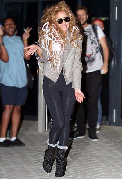 Леди Гага замечена в Лондоне. Там в воскресение она выступит на музыкальном фестивале. А пока до концерта есть несколько дней, певица гуляет по городу. Не заметить девушку на улицах практически невозможно: королева эпатажа то привлекает внимание окружабщих огромной шляпкой с перьями, то "забывает" надеть верхнюю одежду и разгуливает по столице в ярком нижнем белье.