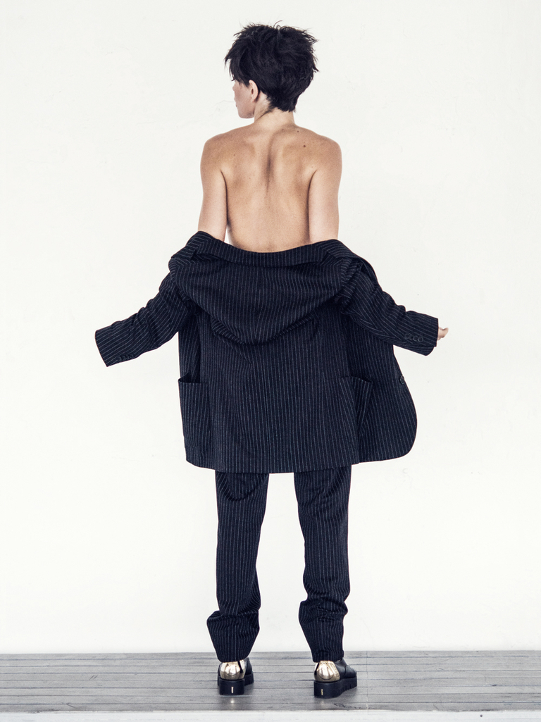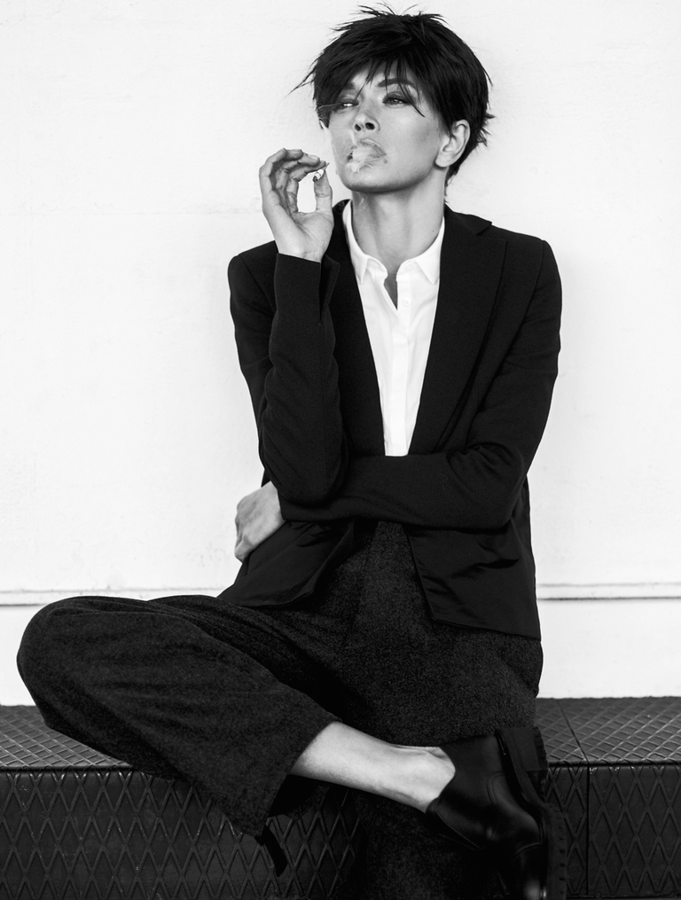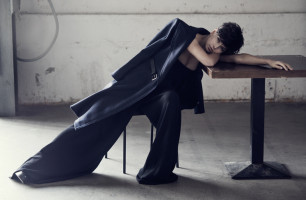 В новой фотосессии для журнала Interview популярная исполнительница Вера Брежнева предстала в образе парнишки-хулигана. У очаровательной блондинки теперь короткие черные волосы и девушку одели в брючный костюм.