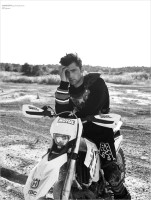 25-летний американский манекенщик специально для фотосессии для очередного выпуска журнала XOXO преобразился в крутого байкера. Красавцу помогали еще двое моделей - Марин Дилу и Синан Мемнум. Веселую компания фотографировал Корай Биранд.