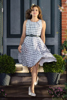 Мендес предстала перед фотографами в ретро-платье в черно-белую клетку, что очень напомнила всем юную Софи Лорен.