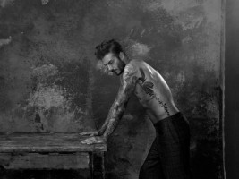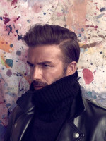 Дэвид предстал перед объективом фотографа на фоне экспрессионистских полотен. Идеальный мужчина показал прекрасный торс. Мужество спортсмена подчеркнули одежда из кожи и свитера грубой вязки. Даже такой строгий образ Бэкхэма очаровывает.