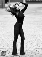Над разработкой коллекции звезда сама активно принимала участие. Было представлено 7 моделей - от классических скинни до джинсов-клеш. Неудивительно, что актриса стала лицом бренда.