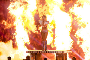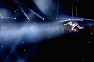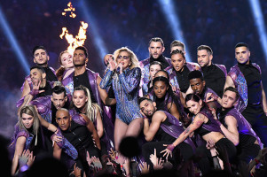 Запомнится игра и выступлением Леди Гаги. Она исполнила несколько зажигательных хитов, не давая зрителям расслабляться. Кроме популярной певицы на игре присутствовали многие звёзды, среди которых были Донателла Версаче, Джон Ледженд, Крисси Тейген, Эмили Ратажковски и её отец Руперт Мердок с супругой Джерри Холл.