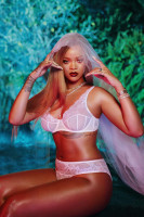 О своей коллекции певица заявила ещё осенью на Неделе моды в Нью-Йорке. Сейчас Рианна является амбассадором бренда. На новом имиджевом снимке РИРИ примерила белоснежный кружевной комплект, дополнив образ фатой невесты.