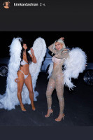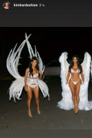 Ким Кардашьян вместе с сёстрами впечатлили гостей на вечеринке по случаю Хеллоуина. Звёзды реалити-шоу появились перед публикой в образах ангелов Victoria's Secret.