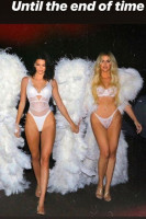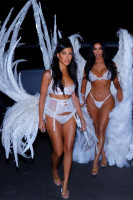 Ким, Кортни, Хлое, Кендалл и Кайли в белом белье, с огромными крыльями за спиной, в перьях и на высоких каблуках смотрелись потрясающе. Многими фото и домашним видео сёстры уже поделились с подписчиками в Инстаграм.