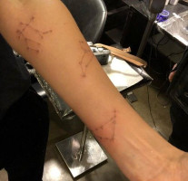 Джессика Альба украсила руку тату в честь своих детей. Это три созвездия, являющиеся знаками зодиака дочерей и сына актрисы.