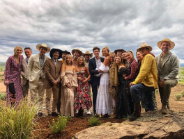 Молодые люди отгуляли вторую свадьбу на ферме в Вайоминге. Торжество прошло в стиле кантри. Невеста была одета в белое платье с рюшами и открытыми плечами. Праздник получился весёлым и запоминающимся.