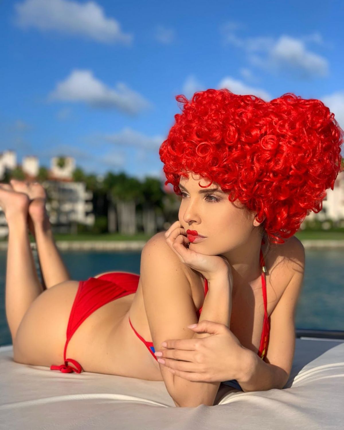 AMANDA CERNY in Bikini with a Red Wig at a Boat, January 2020