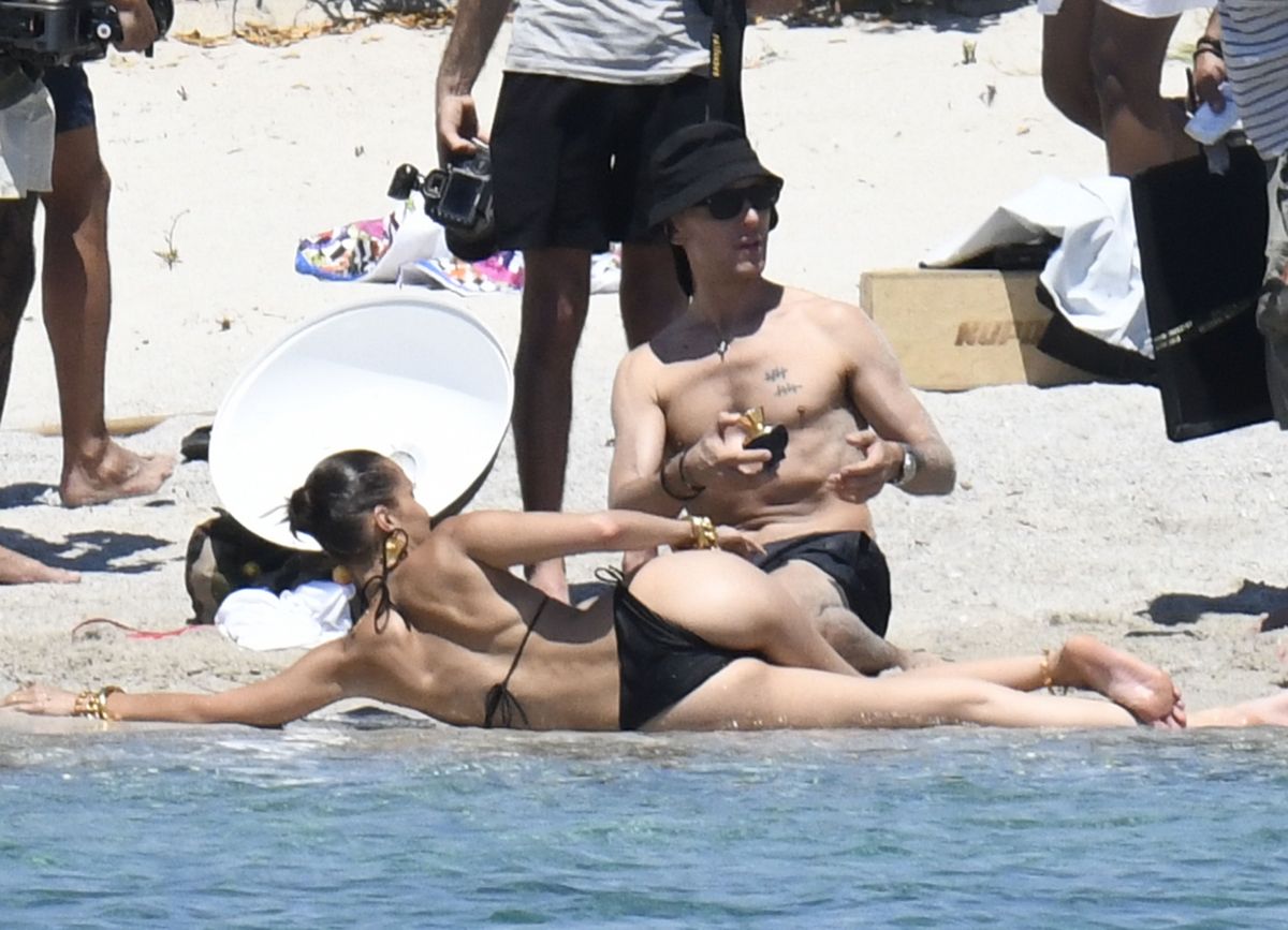 BELLA HADID in Bikini on the Set of a Photoshoot at a Beach 06/24/2020